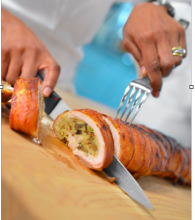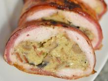 Emeril's Turkey Roulade | Main Course | turkey, wild mushrooms, bacon, milk, eggs, parmesan cheese, white wine |